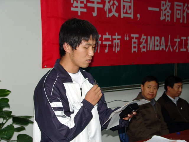 为帮助在校特困生正确面对困难,努力克服困难,安心完成学业,济宁市“百名MBA人才工程”培训班开展了以“我们是兄弟姐妹,我们同在一个校园,让我们牵起手来,一路同行,共同面对困难,共渡难关,共创美好未来”为主题的“牵手校园,一路同行”帮扶特困生助学活动。活动在资金帮扶的基础上,注重加强与贫困生的思想沟通和情感交流,由培训班全体学员推举的学员代表定期与受助特困生开展座谈或联谊活动。