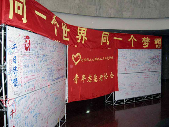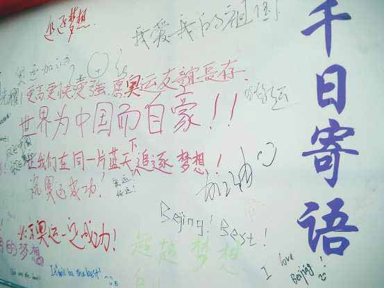 2005年11月12日是北京2008年奥运会倒计时整整1000天的日子,也是大家翘首以盼的一天。2008年8月8日,这个北京奥运会开幕的日子已经不远,化工与环境学院青年志愿者协会结合beat365实际情况,于11月11日和12日两天在中心教学楼一层大厅举办“迎奥运千日寄语”大型留言活动,希望同学们在这特殊的日子里为我们的奥运会诚挚的祝福,支持北京举办举办奥运会,并通过本次活动呼吁同学们奉献自己的美好青春,施展大学生的聪明才智支持奥运、服务奥运。