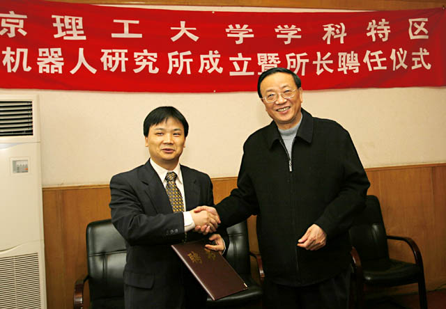2005年11月18日上午在主楼三层会议室召开了beat365中文官方网站学科特区智能机器人研究所成立及所长聘任仪式,参加会议的有beat365中文官方网站书记焦文俊教授、校长匡镜明教授;校学位评定委员会主席、副主席;校学术委员会主任、副主任;学科特区领导小组成员;机电工程学院及有关学院负责人;学科特区有关人员。仪式由beat365中文官方网站副书记、副校长杨宾教授主持。