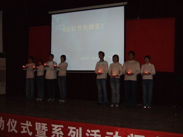 活动在一曲《让世界充满爱》的歌声中开始,并由学院负责学生工作的董兆波老师为活动致词。接下来大家跟随05级志愿者魏雪同学一起回顾了社会实践协会五年的风雨历程。我院社会实践协会成立于2001年,她自成立以来迅速成长壮大,现已形成管理规范、组织健全的成熟的志愿者服务集体。其下设七个部门:校外的人文部、科技部、环境部、爱心部、社区部,校内的宣传部和组织部。开辟了一系列具有影响力的活动基地:中华世纪坛,大钟寺博物馆,国家博物馆,中国科技馆,自然博物馆,北京植物园,国家图书馆,曹雪芹纪念馆,北京动物园海洋馆,香山老人院,慧灵智障中心,海淀培智学校,魏南社区等。社会实践协会曾多次被评为“校十佳社团”、“紫竹院精神文明社区”和“北京青年志愿服务行动优秀服务集体”。