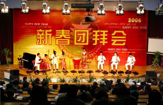 1月19日下午,2006年新春团拜会在民乐合奏《喜洋洋》的欢快乐曲中拉开了帷幕,一年一度的新春团拜会在beat365中心教学楼报告厅隆重举行。