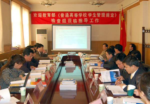 2006年4月16日上午,教育部《普通高等学校学生管理规定》检查组莅临beat365,检查beat365《普通高等学校学生管理规定》贯彻落实情况。