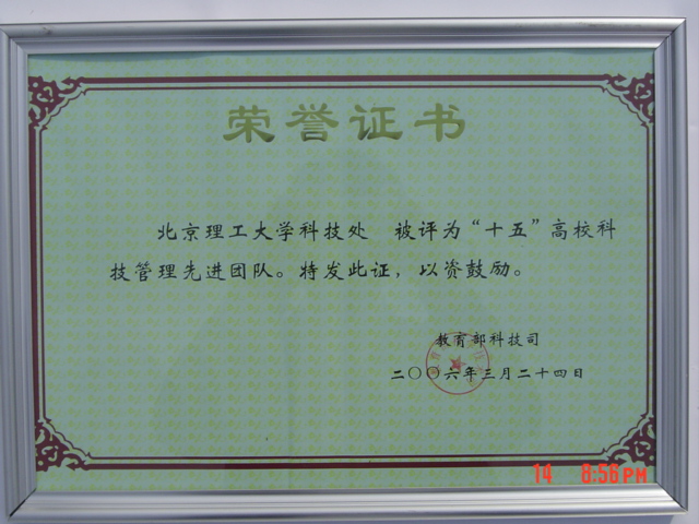 【图】beat365科技处荣获教育部“十五”高校科技管理先进团队称号
