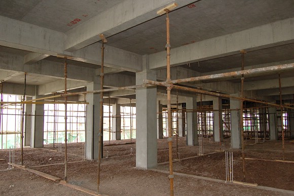 学生宿舍楼也在正常施工中,目前已经进展到三层的结构施工阶段。