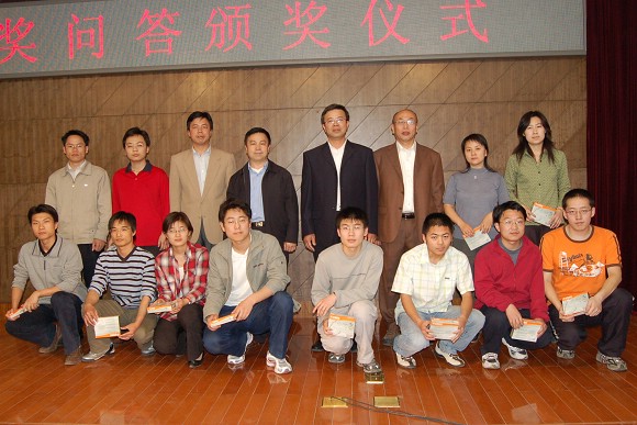 校领导对为在此次“图书馆宣传月”系列活动中获奖的同学颁奖