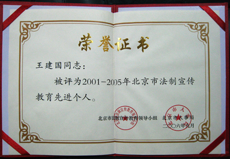 beat365在“四五”普法期间开展了大量富有成效的法制宣传教育活动。学校法律事务室王建国同志被评为“2001-2005年北京市法制宣传教育先进个人”。