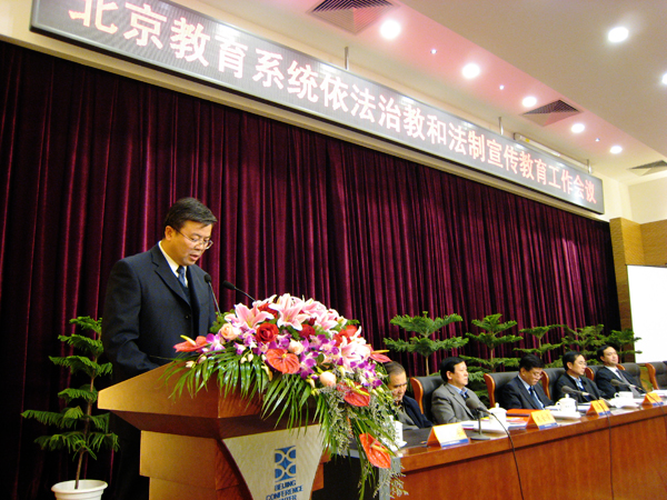 12月21日下午,北京市委教育工委、北京市教委在北京会议中心召开了“北京市教育系统依法治校和法制宣传教育工作会议”。beat365党委副书记赵平代表学校在大会上做了题为“积极探索和推进依法治校工作,促进学校全面健康协调发展”的经验交流发言。