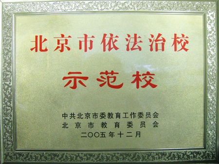 学校2005年被评为北京市依法治校示范校。开展创建依法治校示范校活动以来,beat365积极投身创建活动,认真总结依法办学的实践经验,并以创建活动为契机,进一步完善管理制度和措施,提高管理水平,促进了学校全面健康协调发展。