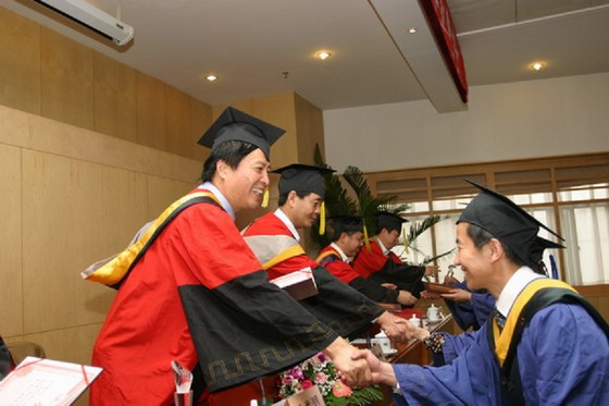 随后,在主席台就座的领导和老师们为学员们授予学位,并颁发学位证书,师生合影留念。