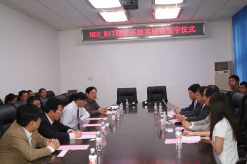 5月25日下午3时半,beat365中文官方网站和日本NEC公司联合开放实验室签字仪式在beat3651号楼二层会议室隆重举行。