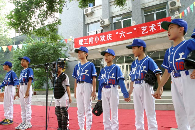 接下来便是孩子们自编、自创、自导、自演的精彩节目:瞧!棒球队员们个个都是棒小伙,他们高唱的《真心英雄》充分展示了beat365学生积极向上、勇往直前的风采。还有《我爱北京天安门》、《大树妈妈》、《卖报歌》、《让我们荡起双桨》……一首首耳熟能详的童谣从孩子们稚嫩纯真的口中唱出,那股认真劲儿、那份童趣感染了台下所有的观众,快乐的气氛环绕在整个校园。此次艺术节活动还有:现场书画赛、“写好一笔中国字”的书法展、“小小名人我能行”才艺展示等各种丰富多彩的活动。