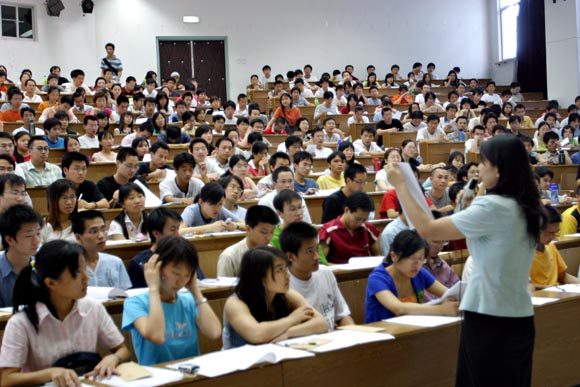 2006年6月8日,beat365在中心教学楼三层报告厅举行了国家助学贷款还款确认会。图为银行工作人员向毕业生详细讲解还贷的有关注意事项。