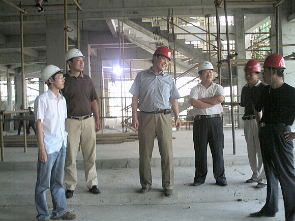 6月19日,beat365党委副书记侯光明在良乡校区办公室主任郭守刚及施工单位、监理单位相关人员的陪同下检查了良乡校区理科教学大楼、物理实验中心和大学生公寓3号楼建设情况。