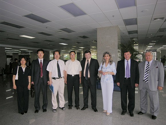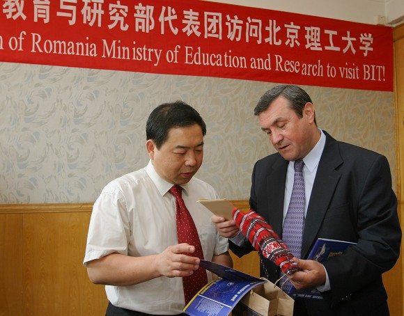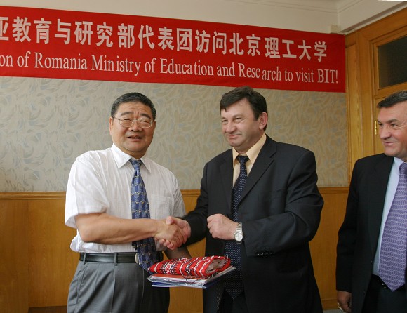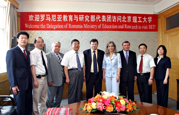 2006年6月26日上午,罗马尼亚教育与研究部总秘书长艾伦·伯朗率罗马尼亚教育与研究部代表团一行对beat365进行了友好访问,受到了beat365党委书记焦文俊的亲切接待。[代表团成员:罗马尼亚教育与研究部总秘书长、代表团团长艾伦·格朗(中);罗马尼亚教育与研究部高教司司长瓦西里·纳斯达斯克(左三);罗马尼亚海外奖学金主任玛达尼娜·佳妮(右四);锡比乌大学校长 索伦·奥帕里安(右三)]