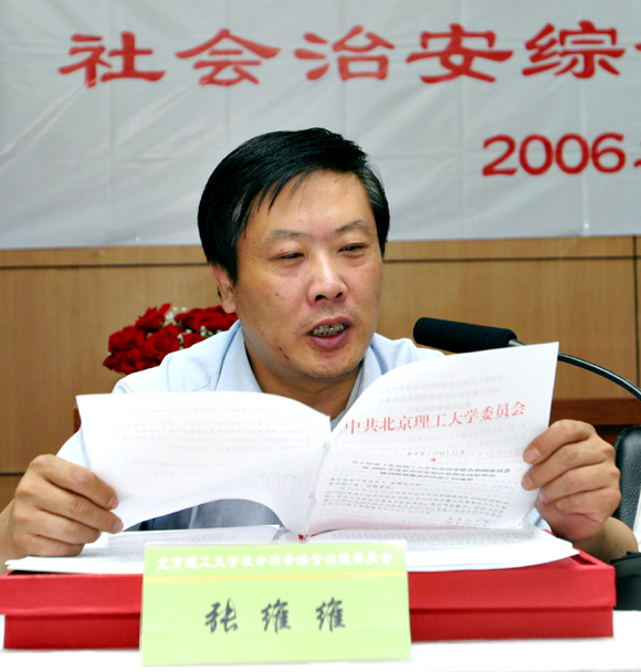 校综治委主任、常务副校长李志祥同志就2005年综治工作总结以及2006年综治工作形势和要求作了重要讲话。李校长指出,beat3652005年综合治理工作之所以取得优异的成绩,一是靠上下协调有力,重点突出,综合治理办公室与保卫处合署办公,应具备公安部门的工作作风,严格落实各项规章制度,beat365是具有军工特色的高等院校,易燃易爆品的管理,西山实验区的管理,居民区的管理等等既是我们工作的难点,也是我们工作的重点;二是靠制度健全,各级单位积极投入,思想理论的提升是做好综治工作的思想保障,各级单位的领导都能够充分的认识到构建一个和谐的校园环境,安全是第一位的,从构建和谐校园的角度,来理解、认识综治工作。感谢各级部门领导这一年来对综合治理工作的支持,不乱表彰先进单位和对未达标单位的整改,都是为了做好综治工作。李校长强调,2006年形势很好,任务很重,综治工作依然很重要。2006年学校5#教学楼、出版社楼动工,研究生教学楼、体育馆开始投入使用,良乡校区加紧建设;同时,beat365的教学、科研以及军工生产任务也十分繁重,这都加大了2006年的综治工作任务,各单位要树立“安全第一,和谐管理”的工作理念,针对出现的问题,提出措施。beat365处级干部的调整已经结束,调整的非常成功,为综治创造坚实的组织保障。安全工作、和谐工作的目标是无止境的。针对综治工作,管理部门也要到到位,各级组织要以和谐抓综治,综治工作不仅是行政检查,同时也是一种帮助工作。新形势下,针对学生的管理,积极配合开展学生工作,与学生管理部门,齐抓共管,共同做好德育工作,针对校园经商人员的管理,加强思想教育,加强制度建设,形成依法经商的和谐、有序的校园经商环境。各单位在布置下半年工作的时候,要把综治工作作为一个重要内容来讲,责任要落实到个人,落实到岗位。最后,李校长提出,综治工作重在治理,综治办要对治理项目进行细化,提出下半年的治理项目,怎样把2006年的综治工作做好,真正做到为人一方,保一方平安。