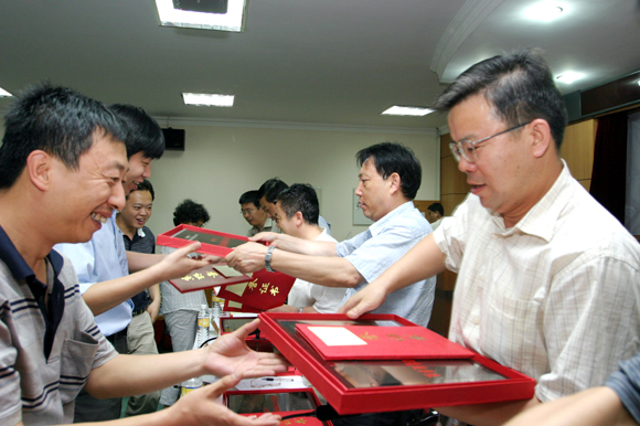 校领导为综合治理先进单位、先进个人颁发奖牌及证书。