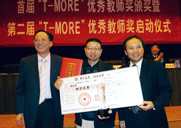 2006年10月17日下午,首届“T-more”优秀教师颁奖大会暨第二届“T-more”优秀教师奖启动仪式在7号教学楼报告厅隆重举行。会议由常务副校长李志祥主持。校长匡镜明,党委副书记侯光明,副校长孙逢春、赵显利,“T-more”基金会理事长欧亚平先生、副理事长张来平女士、执行理事兼首席执行官厉一凡女士、执行理事王鹏女士、理事陈冬牛先生,全体获奖教师,以及教务处韩宝玲副处长、各学院教师代表、学生代表等共200余人出席了颁奖大会。