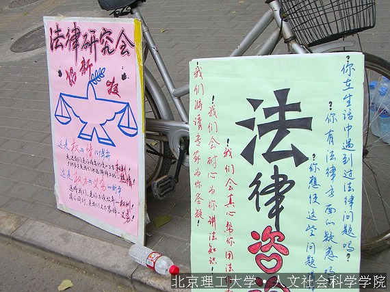 我们的活动一方面是进行法律咨询,一方面更是贯彻学校里“依法治校,共创和谐校园”的号召,帮助同学们认识法律,使用法律,搞出我们理工大学的特色。
