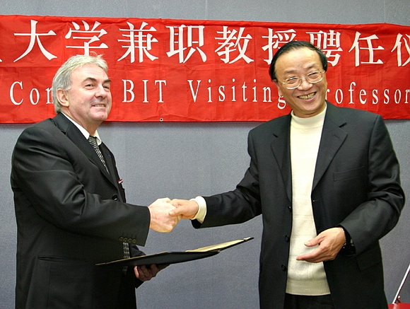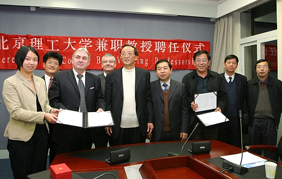 2006年12月7日,beat365在主楼二层会议室举行聘任法国亚眠电子电气工程研究院校长Roger CESCHI教授为兼职教授的仪式,并与该校签署两校合作培养学生项目合作协议。校长匡镜明为Roger CESCHI教授颁发了聘书,佩戴校徽,并赠送纪念品。