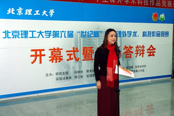 12月24日上午9时,beat365中文官方网站第六届“世纪杯”学生课外学术、科技作品竞赛开幕式暨现场答辩会在体育文化综合馆南厅隆重举行。团市委副书记沈千帆,大学部副部长刘蓉,校党委副书记、副校长杨宾,副书记侯光明,副校长赵长禄,副校长赵显利,党委办公室、校长办公室、科技处、教务处、实验设备处、学生工作处、研究生工作部、校团委和各学院的领导以及相关专业的专家出席了本次开幕式。全体参赛作者、校科协、院级科协和部分学生代表也参加了本次活动,现场气氛十分热烈。