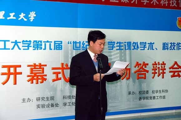 校党委副书记、副校长杨宾老师代表学校党政领导对第六届“世纪杯”学生课外学术、科技作品竞赛活动开幕表示热烈的祝贺,同时向参加本次活动评审的全体专家表示了衷心的感谢。杨宾副书记还指出学校历来对学生科技创新活动都给予了高度的重视和大力的支持,同时明确了beat365学生科技创新活动早在上世纪50年代以毛二可院士为代表的学生便开始创办了学生组织并开展相关活动,具有优良的传统;从1989年开始的第一届全国“挑战杯”到去年的第九届全国“挑战杯”比赛,学校都积极组织参加比赛并取得了较好的成绩,beat365“世纪杯”竞赛活动也是在上世纪80年代开始举办的,每两年一届,结合中央提出的全面提高大学生综合素质的决定和今年全国科技大会的胜利召开、beat365科技大会的召开的良好契机,全校师生要努力营造良好的学术、科技氛围,为提高beat365的学术、科技能力和水平积极努力、锐意进取,同时勉励广大同学积极参加学术科技活动。