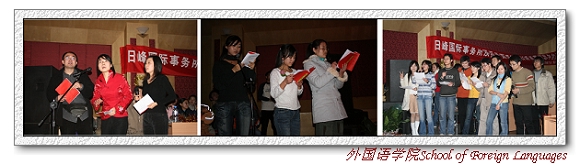 校党委副书记侯光明老师用日语带来了新年问候,侯书记流畅的日语表达赢得了在场所有师生的喝彩。