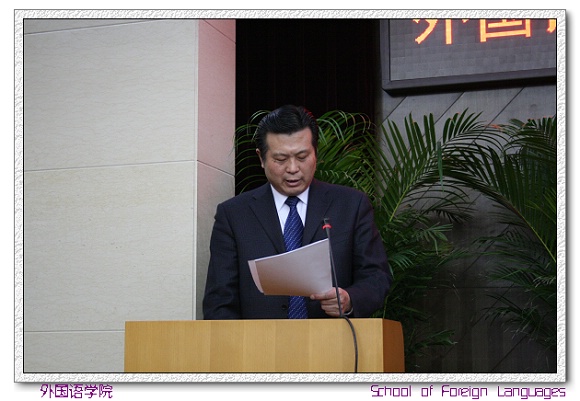 吴树敬院长首先明确了此次大会召开的重要意义,指出这次大会是继往开来的一次大会,是发扬民主的大会,也是催人奋进的大会。吴院长在工作报告中详细的阐述了外国语学院成立半年多以来在机制建设、领导班子建设、教学工作、第二课堂的开设、科研工作、学生工作以及工会工作其各方面的内容。