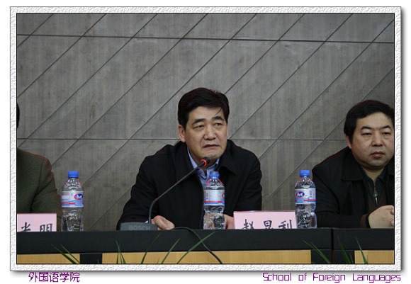 赵显利副校长在讲话中指出,高等学校的教职工代表大会是实行民主集中的一项制度,教职工代表大会的工作是落实党的教育方针,践行“三个代表”的重要思想,包括落实国防科工委提出的“三优一提”工程的重要保障。外国语学院在成立不久就召开全体教职工大会,并且给出了涉及到教学、科研、管理等多方面的16个讨论审议文件,说明外国语学院很重视这方面的工作,做实事,是一个好的先兆,希望外国语学院在规范管理,建章立制等方面做的更好。最后,赵校长在此代表校领导预祝大会取得圆满成功并祝老师新年快乐!
