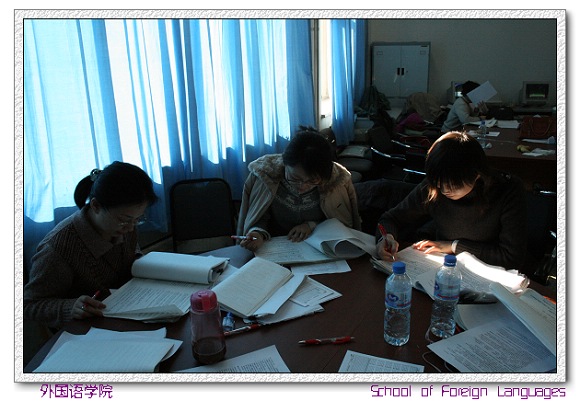 考试结束后,大学英语部的老师都集中在办公室,马上展开集中阅卷工作。她们不顾辛劳,为了让学生及时知道考试成绩。