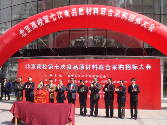 2007年3月25日,北京高校第七次食品原材料联合采购招标大会在北京邮电大学体育馆举办,伙食联合采购招标是北京高校伙食管理部门共同创建的"阳光工程",北京60余所高校在这个平台上采购食品原料。此次联合招标采购大会主办方为北京高校伙专会,承办方为北京高校伙食联合采购网。157家供应商现场接受来自92所高校伙食部门的选择。
