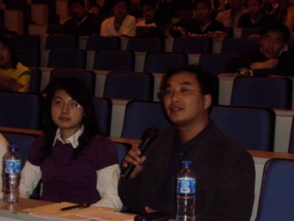 接下来,选手按照顺序针对自己的题目进行5分钟的演讲。之后评委们根据其演讲内容现场提问。选手们流利的口语,机智的回答不时赢得了现场观众的掌声。