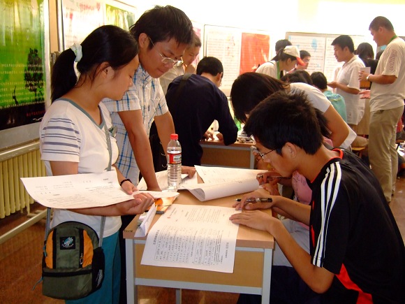 还没到一点就已经陆陆续续的有同学来到七号楼填表等待,beat365同学的热情打动了在场每一位志愿者。一点整,血样采集就紧张的开展起来。随血车前来的除北京市血液中心的专业医生外,还有北京市志愿者之家的志愿者,作为生命学院青年志愿者协会的合作单位,他们与我院志愿者一道为前来捐献的同学们答疑解惑。在七号楼大厅,青协会员们详细指导前来捐献的志愿者填写信息表并为他们耐心解答填表中遇到的各种问题。