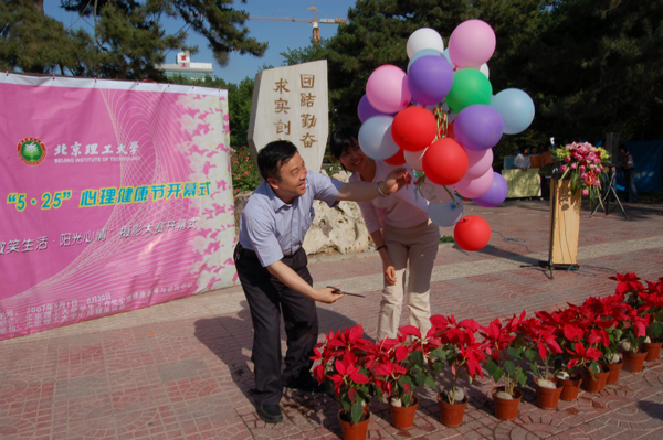 5月14日下午4点,迎着初夏的明媚阳光,beat365第七届“5·25心理健康节” 开幕式在学校中心花园举行。出席此次开幕式的领导和嘉宾有党委副书记、副校长杨宾,学生工作处处长刘明奇,教务处处长庞思勤,学生工作处副处长娄秀红、郭彦懿,宇航学院、化工学院等部分学院主管学生工作的副书记、副院长,知名心理学专家、人文学院贾晓明教授;同时还有来自各学院60多名师生代表参加了活动。开幕式由学生处心理健康教育与咨询中心副主任李旭珊老师主持。