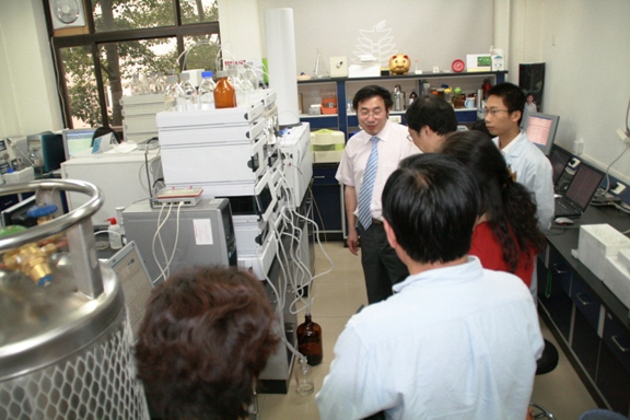 汇报会结束后,郭主任一行前往求是楼三层生物分离实验室进行了实地考察,对我院实验室的管理现状,设备水平,高利用率等给予了高度的评价和肯定,并表示回去后将认真研究落实我院申报工作的相关事宜。