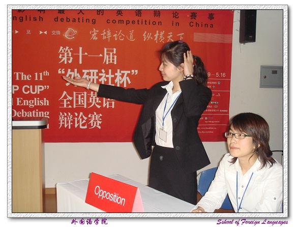 “外研社杯”全国大学生英语辩论赛由外语教学与研究出版社主办,国际口语联盟和中国英语教学研究会合办,由英国文化协会提供赞助,是目前为止公认的我国影响最大的年度英语辩论赛事,代表了国内英语口语教学的最高水平。比赛赛程和评分标准均采用与国际辩论惯例接轨的美国“议会制”规则,对选手综合素质要求较高。