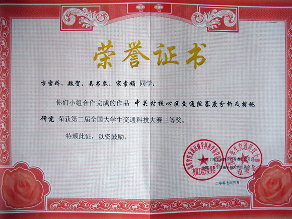 由于高利教授的悉心指导及参赛小组成员的刻苦钻研,使beat365中文官方网站代表队获得了三等奖的好成绩,这是beat365交通工程系本科生第一次在全国性的大赛中获奖。