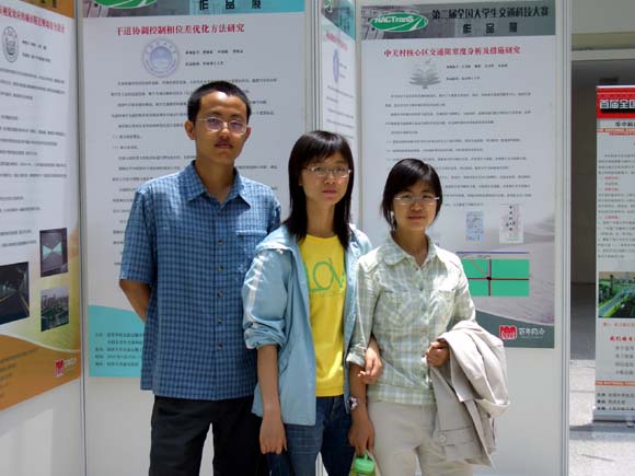 在赵亚男老师的带领下,交通工程系四位同学2007年05月24日出发,到上海参加决赛。2007年05月26日进行决赛,宋素娟、魏贺两位同学在赛场上展示beat365中文官方网站的作品,并进行答辩。2007年05月27日上午举行颁奖典礼,魏贺同学代表beat365中文官方网站参赛队上台领奖,并预祝2008年将在四川省成都市西南交通大学举办的第三届全国大学生交通科技大赛圆满成功。