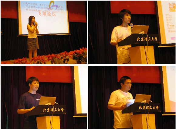 答辩会上,参评的候选人一一上台,介绍了自己在论坛中的具体工作和分管版块的发展情况,在展示自我的同时,与大家分享了论坛管理工作中的心得体会。