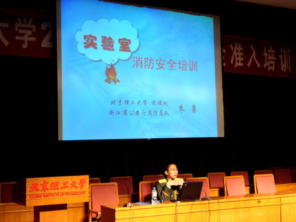 浙江省公安厅消防总队上尉朱勇做实验室消防的培训
