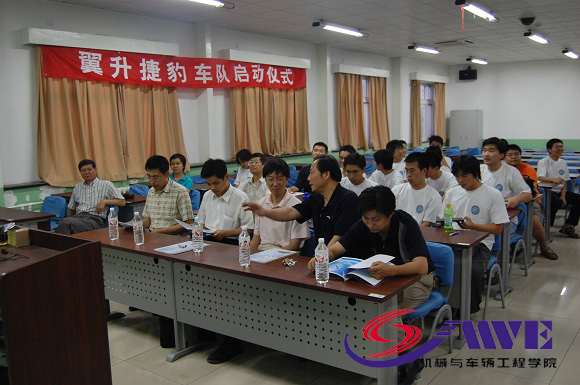 2007年全国节能车大赛beat365中文官方网站“翼升捷豹车队”于2007年6月21日在beat365中文官方网站工程训练中心举行了正式启动仪式。校研工部副部长魏名山,机械与车辆工程学院副院长丁洪生,副书记、副院长郝洪涛和热能与动力工程系副主任张卫正以及汽车电子技术创新中心主任张幽彤和工程训练中心副主任周郴知老师出席了本次启动仪式。