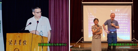 本次培训会中邀请了北京市回龙观医院北京心里危机研究与干预执行主任费立鹏就《大学校园中的危机干预》作专题讲座,同时北京青年压力管理服务中心专家弗兰克带领大家以体验形式“共度”《我们的人生旅程》。