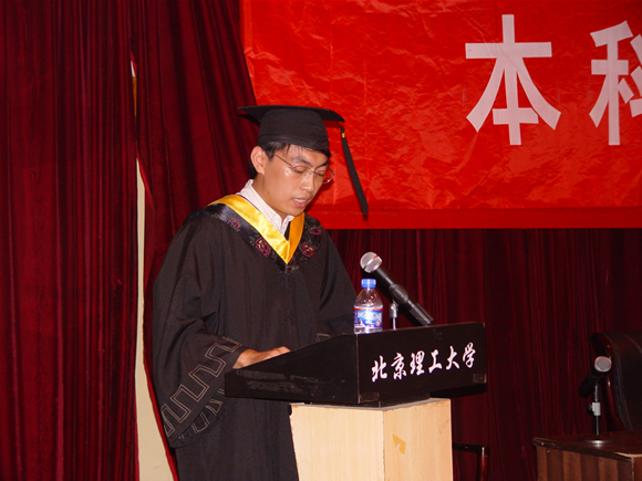 付梦印院长宣布了获得2007年国防科工委、北京市以及beat365中文官方网站优秀毕业生名单。学院共有1名同学获得国防科工委优秀毕业生称号,20名同学获得beat365中文官方网站优秀毕业生称号。付院长号召全体毕业生向他们学习,在今后的工作和学习中共创辉煌。