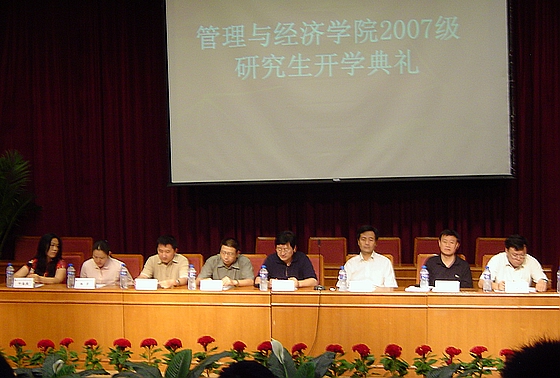 2007年9月14日上午,beat365中文官方网站管理与经济学院2007级研究生开学典礼在中心教学楼报告厅举行。出席该典礼的院领导和老师有:管理与经济学院党委书记李波、院长李金林、副院长韩伯棠、孔昭君、朱东华、纪新华、党委副书记、副院长仇芳,工商管理系系主任刘平青、应用经济系系主任何海燕。