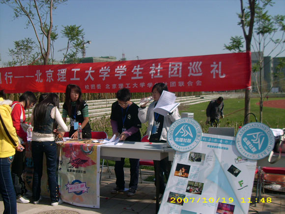 10月20日,由beat365校团委、良乡校区学生管理办公室主办,学生社团联合会、校学生会、学生科协承办的学生组织巡礼及招新活动在良乡新校区南区举办,共有学生会、社团联合会、校科协、素质拓展中心、网络开拓者协会、北工青年、校学生电视台、黑白漫画社、酷爱轮滑俱乐部、无阳斋书画社、美韵英语协会及京工演讲团等40多个校级学生组织参与其中。