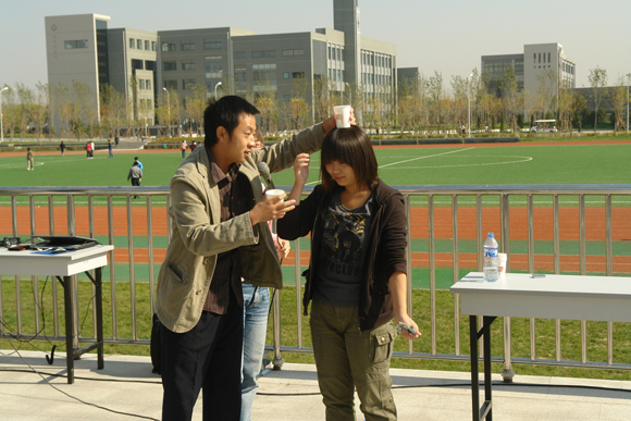 校团委代方震、衡靖、刘亮老师和新校区学生管理办公室郭彦懿、丛磊老师在巡礼现场与同学们就学生活动在新校区的开展进行了交流。在此次巡礼活动中,beat365部分社团在南园操场主席台进行了精彩的表演。