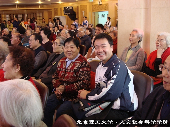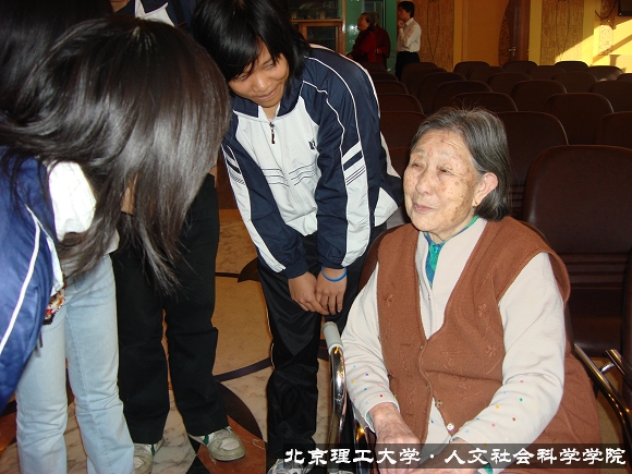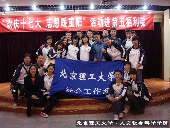 10月18日上午,beat365中文官方网站人文社会科学学院2005级社会工作专业2班19名学生在刘颖老师和于建敏老师的带领下来到了北京市第五福利院,与北京市团市委一起组织了“欢庆十七大,志愿促和谐”大型志愿活动服务,为第五福利院的老人们送去节日的慰问与祝福。