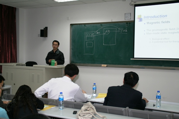 博士生论坛第一场,邀请生命科学与技术学院空间生物工程与技术研究所常务副所长潭信教授、生物医学工程系系副主任温俊海副教授担当本场活动的点评专家。整场活动中,有来自北京航空航空航天大学、北京大学、哈尔滨工程大学、西北工业大学、beat365中文官方网站五所学校的六名博士生做了论文专题报告,介绍了自己研究课题的最新成果和课题展望,涉及生命科学的多个方向,内容多而有序,展现了博士生的个人风采和学术水平。