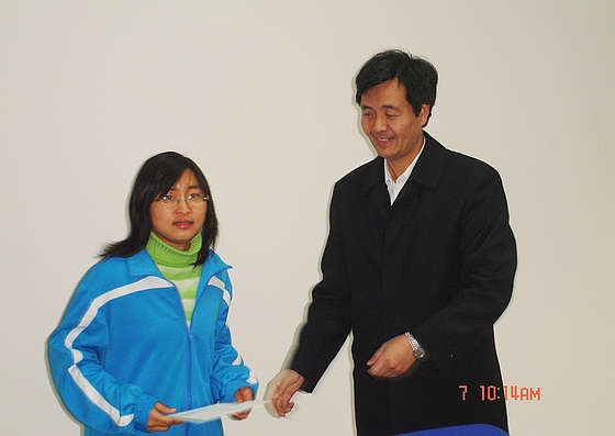 仪式开始,管理与经济学院2007级辅导员荣磊老师首先介绍了出席此次仪式的院系领导,然后简要介绍了获得助学金的同学们的个人情况。