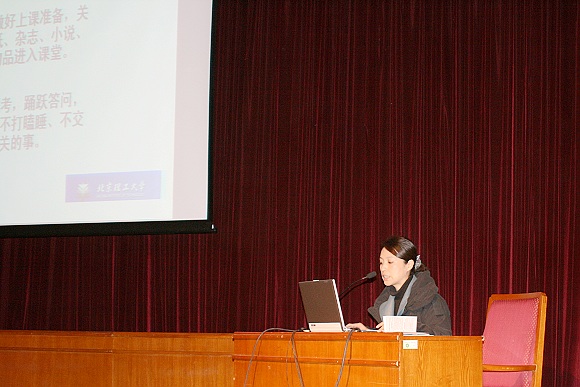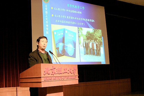 随后,胡更开院长向在座的师生介绍了理学院本科教学工作的基本情况。胡老师总结了学院近年来在教学工作、科研工作、学科工作、人才队伍建设和学生工作等五个方面所取得的突出成绩,重点介绍学院概况和条件、教学管理与改革、教学成果与特色,提出了学院“厚基础、宽口径、重实践、强能力、创特色”的办学理念,并将理学院定位在“应用型理科人才培养基地,对校其它专业辐射和支撑的基地”,要求大家要认真学习和强化专业知识、提高自身素质和技能,争取为学院、学校乃至社会做更多的贡献。