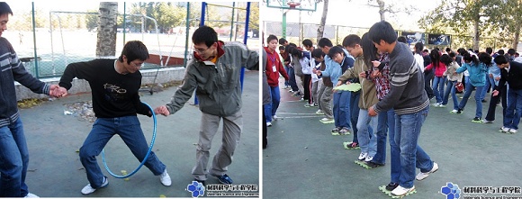在“心有千千结”这个游戏中,锻炼了大家在团队中的协调能力。“摇啊摇”让我们童年的呼啦圈在我们现在的生活中产生更加美好的印象。“穿越沼泽地”是最困难的一项:大家在规定的时间内,跨过布置的障碍,在艰难险阻中,磨练了大家对团队的热爱。大家在活动结束时,对每个人进行评价,让活动的乐趣真正积淀在每个人的心中。
